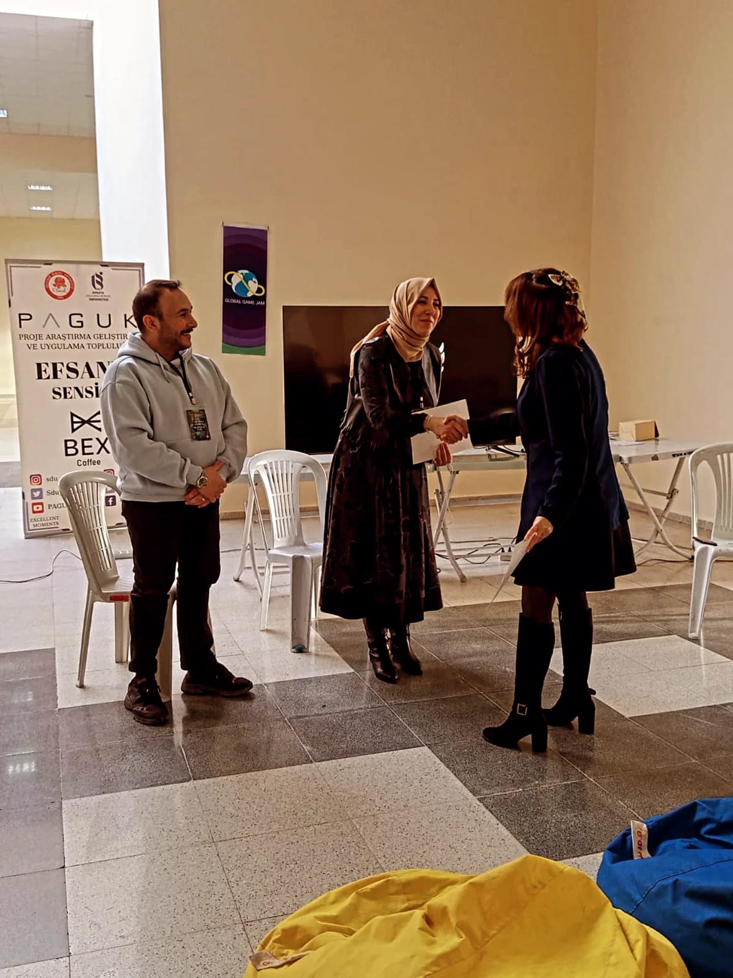 Tüm dünyada aynı anda gerçekleşen "Global Game Jam" etkinliği 30.01.2026-01.02.2026 tarihleri arasında Süleyman Demirel Üniversitesi SDÜ Paguk ve SDÜ Dijital Oyunlar ve E-Spor Toplulukları öncülüğünde Atatürk Kapalı Spor Salonunda gerçekleşti. Anabilim Dalımızdan SDÜ Dijital Oyunlar ve E-Spor Topluluğu Akademik Danışmanı Dr. Öğr. Üyesi Rümeysa PEKTAŞ ve Topluluk Başkanı Öğretmen Adayımız Aziz TUNCER'in ve Öğretmen Adaylarımızın da yer aldığı etkinlik kapsamında sektörden gelen geliştirici ve tasarımcı konuklarımızın çevrimiçi ve yüz yüze tecrübelerini dinledik, ardından katılımcı öğrencilerimizin o muhteşem tasarımlarına ve girişimcilik ruhlarına şahitlik ettik. Boş bir ekranın başında başlayıp, kodlarla ve tasarımlarla dijital oyuna dönüşen projeleri incelemek gurur vericiydi. Değerli SDÜ Paguk Topluluğu Akademik Danışmanı ve Wefi Games Founder Dr. Öğr. Üyesi Afra ÇALIK KUŞ ve Wefi Games Co-Founder Mustafa KUŞ'a söyleşileri sonrası sertifikalarını takdim ettik. Başta Süleyman Demirel Üniversitesi değerli yönetimine, SDÜ Paguk ve SDÜ Dijital Oyunlar ve E-Spor Topluluklarına, değerli katılımcılara ve sponsorlarımıza verdikleri destek için teşekkür ederiz.