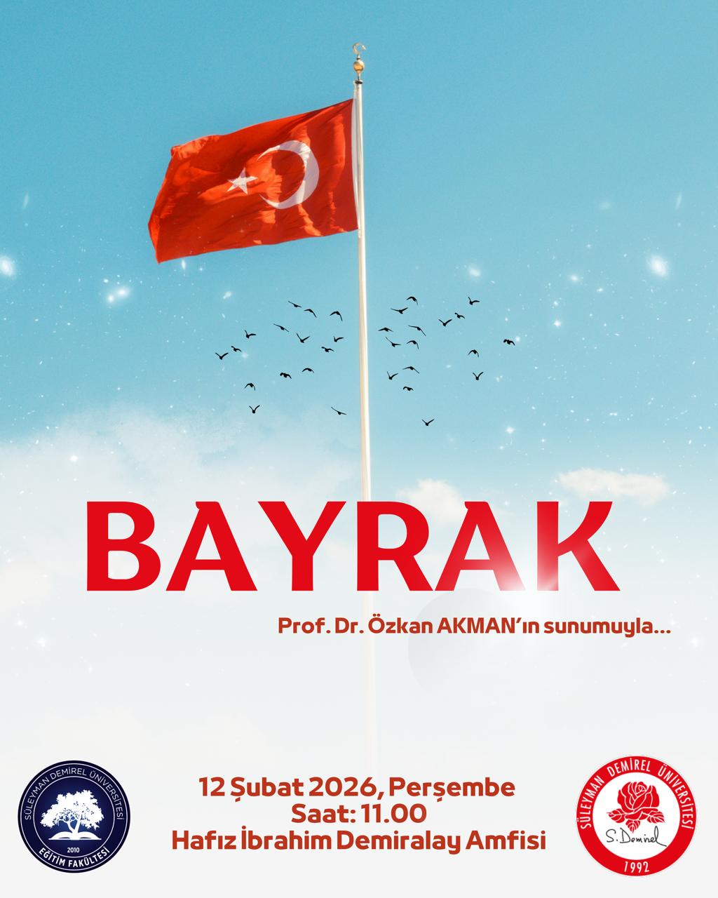 Fakültemiz öğretim üyelerinden Prof. Dr. Özkan Akman tarafından düzenlenen "Bayrak" temalı anlamlı etkinliğe tüm paydaşlarımızın katılımını bekliyoruz. Milli değerlerimizin simgesi olan bayrağımızı konu alan bu özel buluşmada sizleri de aramızda görmekten onur duyarız.