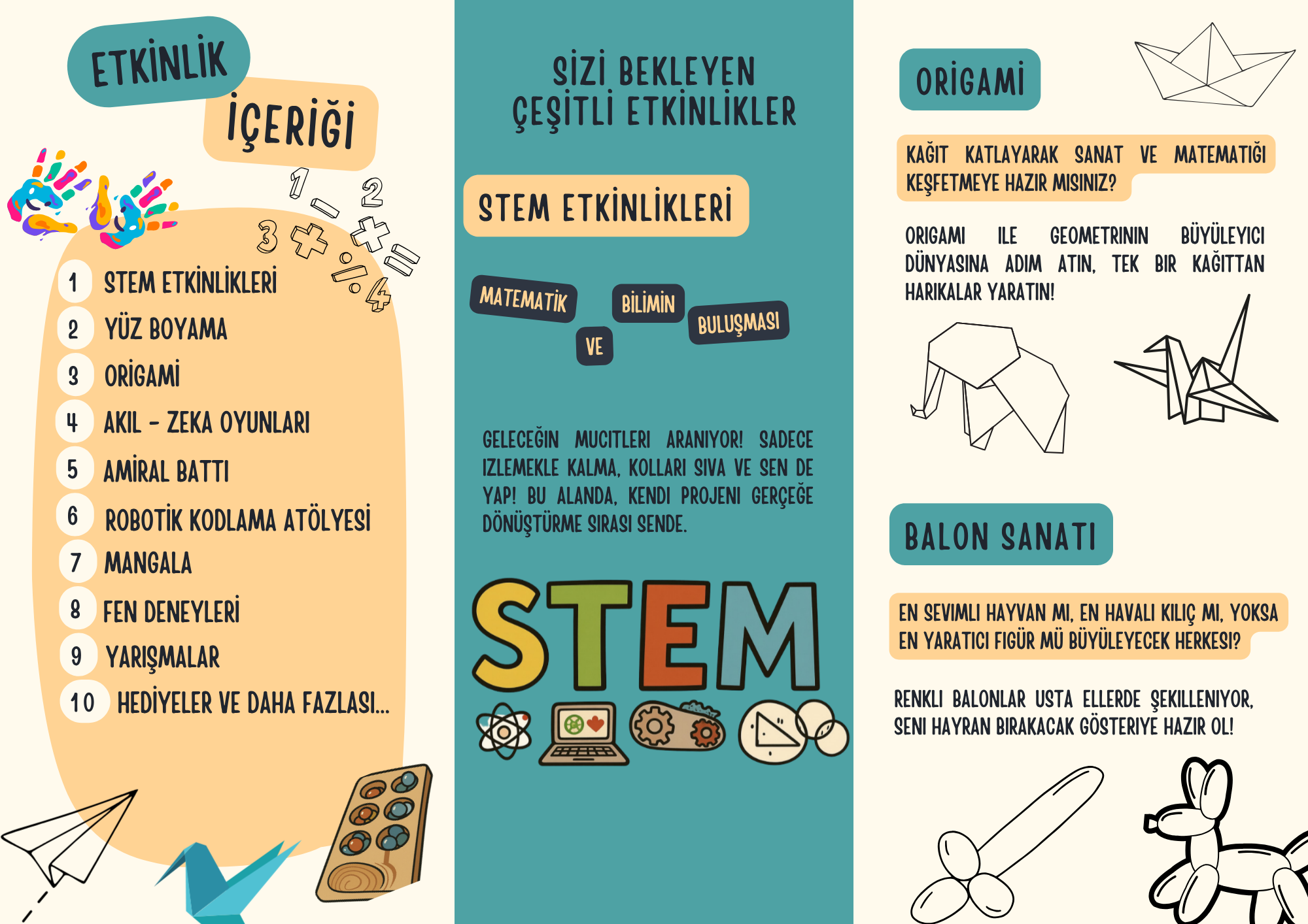 Matematik ve fen bilimlerine yönelik farkındalık oluşturmayı amaçlayan etkinlikte, çeşitli uygulamalar, etkileşimli etkinlikler ve eğlenceli öğrenme deneyimleri katılımcılarla buluşturulacaktır.