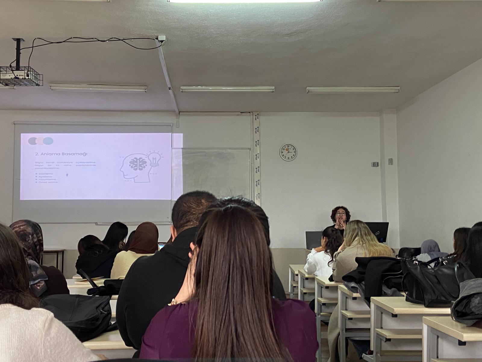 Ayrıca Bloom Taksonomisi üzerine bilgilendirme yapılarak ders kitabı incelemede soru hazırlama sürecinde bilişsel basamakların nasıl kullanılacağı ele alındı.